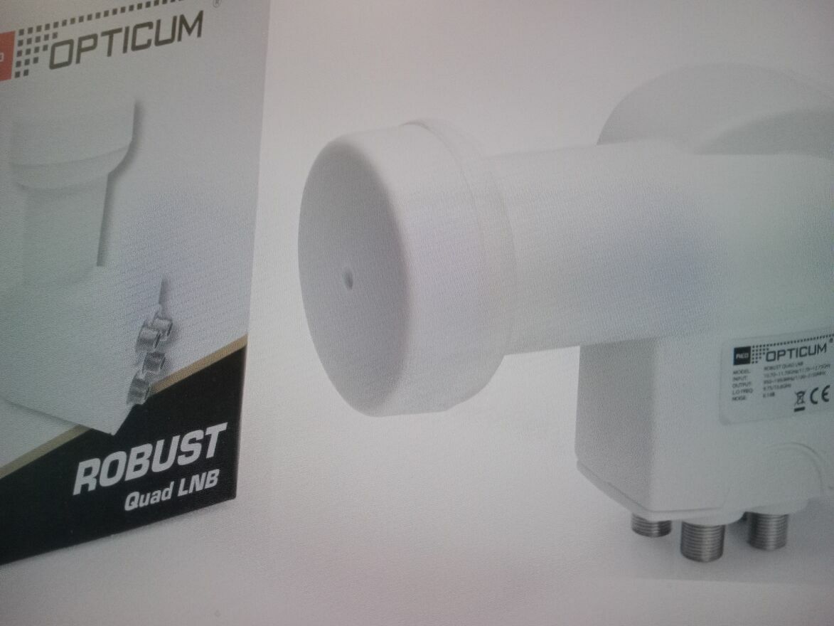 Sprzedam nowy konwerter Quattro marki Opticum. Konwerter typu Quattro został zaprojektowany do pracy z multiswitchem. Odpowiedni układ multiswitchy, z wykorzystaniem jednej anteny i jednego konwertera Quattro, może zapewnić niezależny odbiór sygnału satelitarnego nawet kilkuset odbiorcom jednocześnie.Posiada przeciwdeszczową osłonę gniazd F. Charakteryzuje się niskim współczynnikiem szumów fazowych 0,1dB. Konwerter przeznaczony do współpracy z multiswitchem, nie do bezpośredniego podłaczenia z dekoderem / telewizorem.